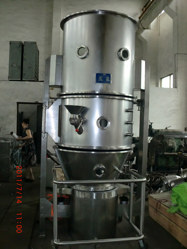 FL FG系列立式沸騰制粒干燥機的原理是物料粉末粒子,在原料容器(流化床)中呈環形流化狀態,受到經過凈化后的加熱空氣預熱和混合,將粘合劑溶液霧化噴入,使若干粒子聚集成含有粘合劑的團粒,由于熱空氣對物料的不斷干燥,使團粒中水分蒸發,粘合劑凝固,此過程不斷重復進行,形成理想的、均勻的多微孔球狀顆粒。