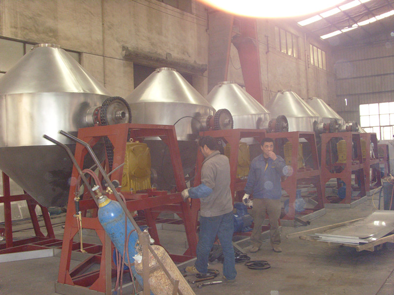 ● 在動力驅動下,罐體作緩慢旋轉, 罐內物料不斷地混合,從而達到強化干燥的目的。