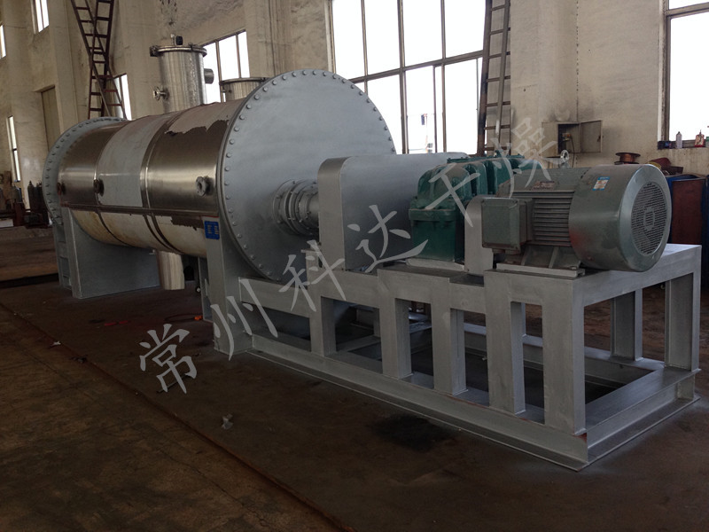 在槳葉及夾套通入熱介質加熱的同時,出料口上部同時進行真空抽濕,這樣高高增加了機器的干燥強度。蒸發出來的水份經真空系統由水環式真空泵流出。